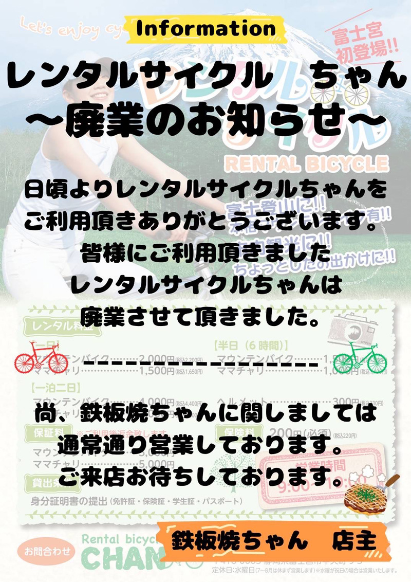 鉄板焼ちゃん営業再開のご案内